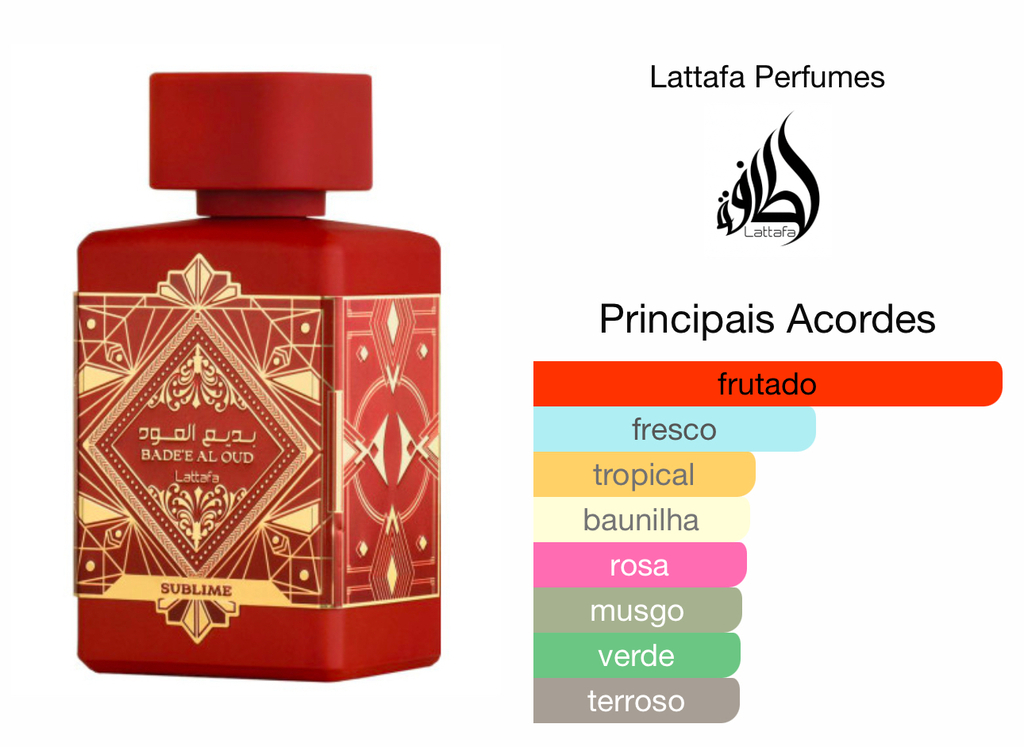 Bade'e Al Oud Sublime de Lattafa Perfumes é um perfume Amadeirado Aromático Compartilhável. Esta é uma nova fragrância. Bade'e Al Oud Sublime foi lançada em 2023. As notas de topo são: Maçã, Lichia e Rosa. As notas de coração são: Ameixa e Jasmim. As notas de fundo são: Baunilha, Musgo e Patchouli